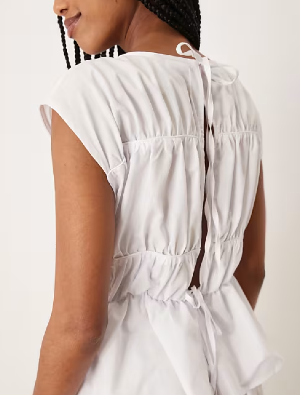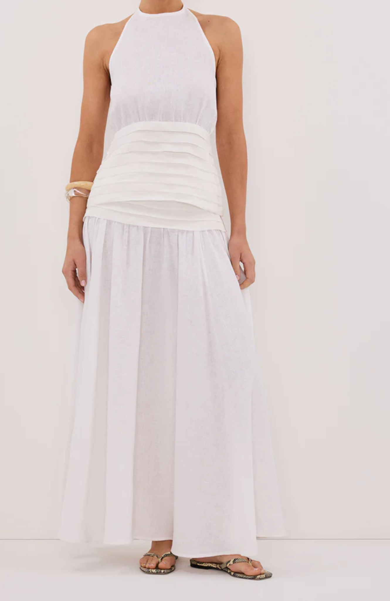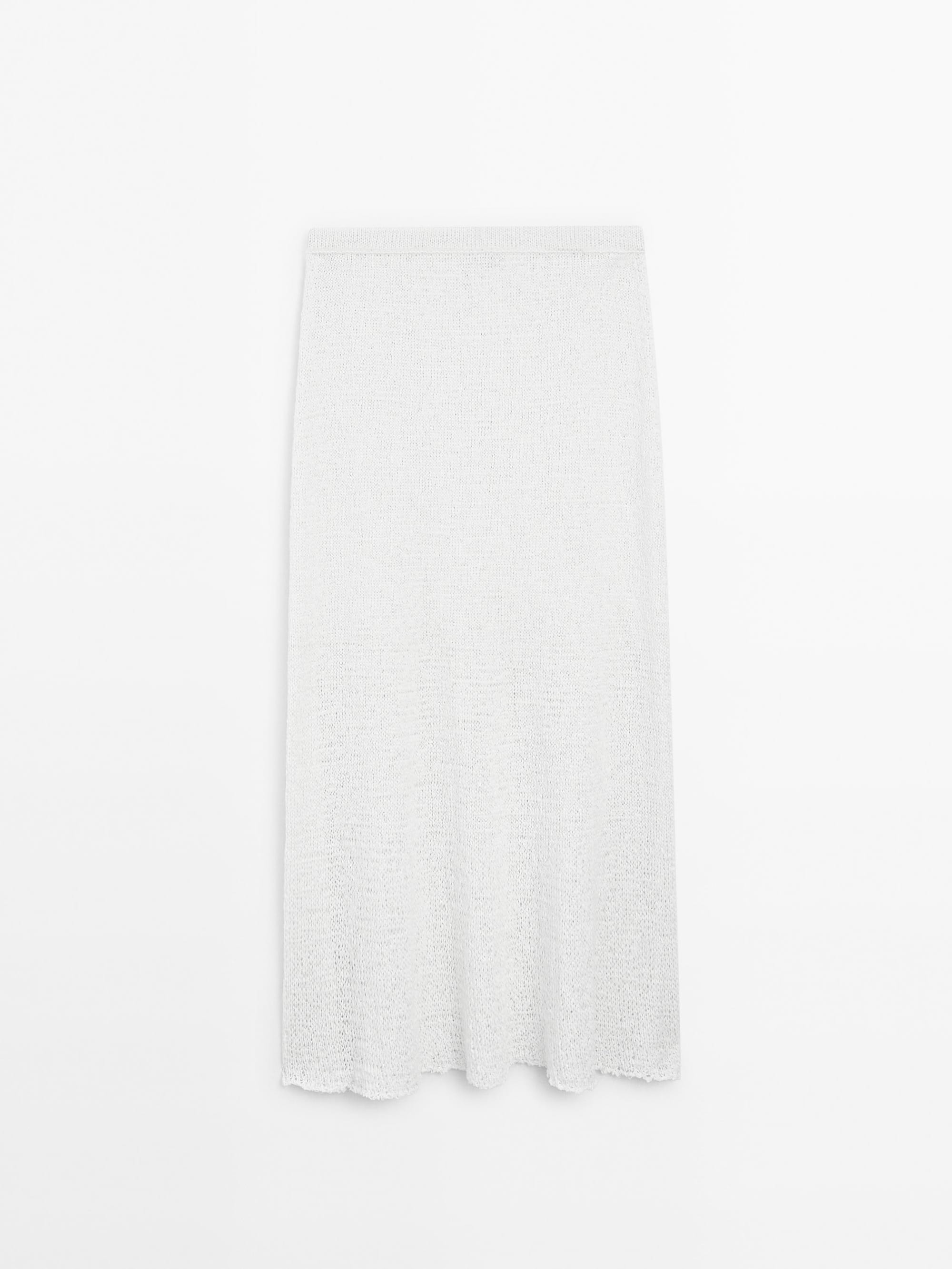 Top: Halle white linen midi skirt, €205, Dissh; balloon sleeve sweater with bows, €79.95, Massimo Dutti Bottom: Cotton blend midi skirt, €89.95, Massimo Dutti ASOS Design ruched panelled maxi dress in white, €59.99, Asos