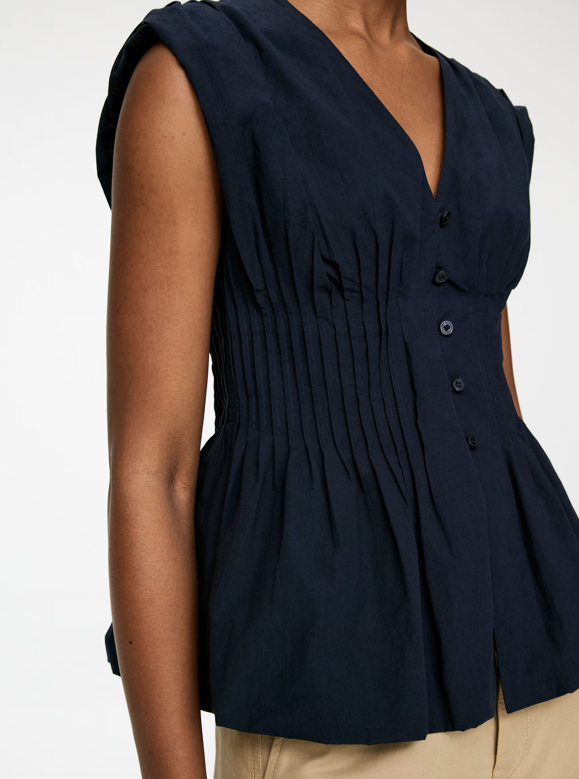 Easy-breezy is the name of the game, opt for wide-leg trousers and billowing pleated fits that allow for air circulation. Think Toteme Inspired cotton’s and neutral culottes or Bermuda’s that can be easily layered.